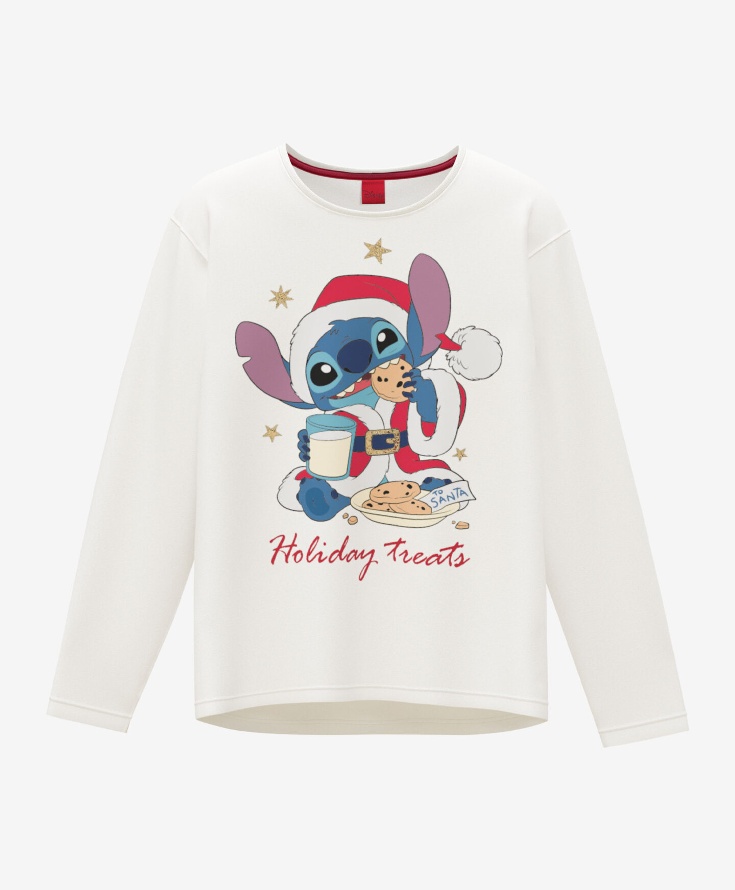 El pijama de Lilo & Stitch está compuesto por una camiseta de manga larga de algodón y pantalones cortos de franela. El diseño navideño inspirado en la popular animación conquistará a todos los fans de Disney. Es suave, agradable al tacto y cálido, ideal para las noches frías de invierno. También es una idea de regalo perfecta.