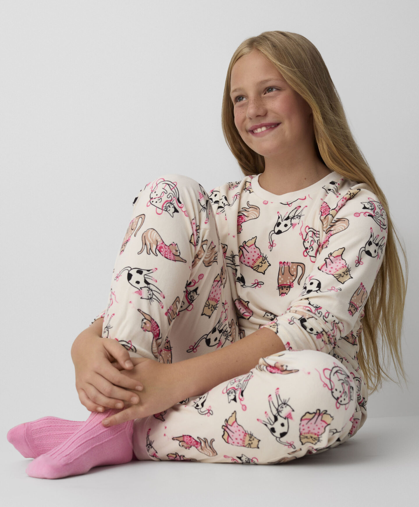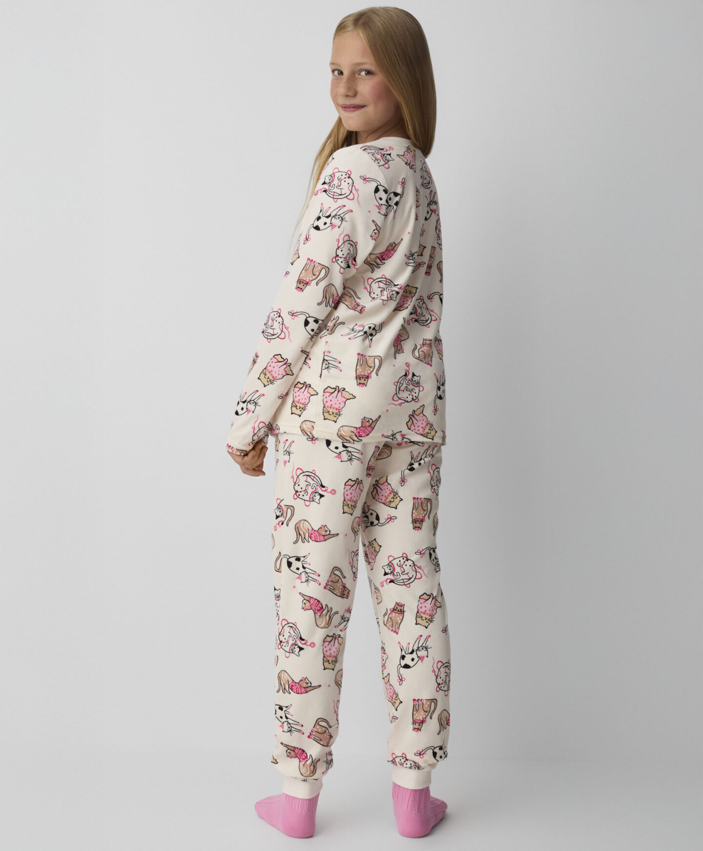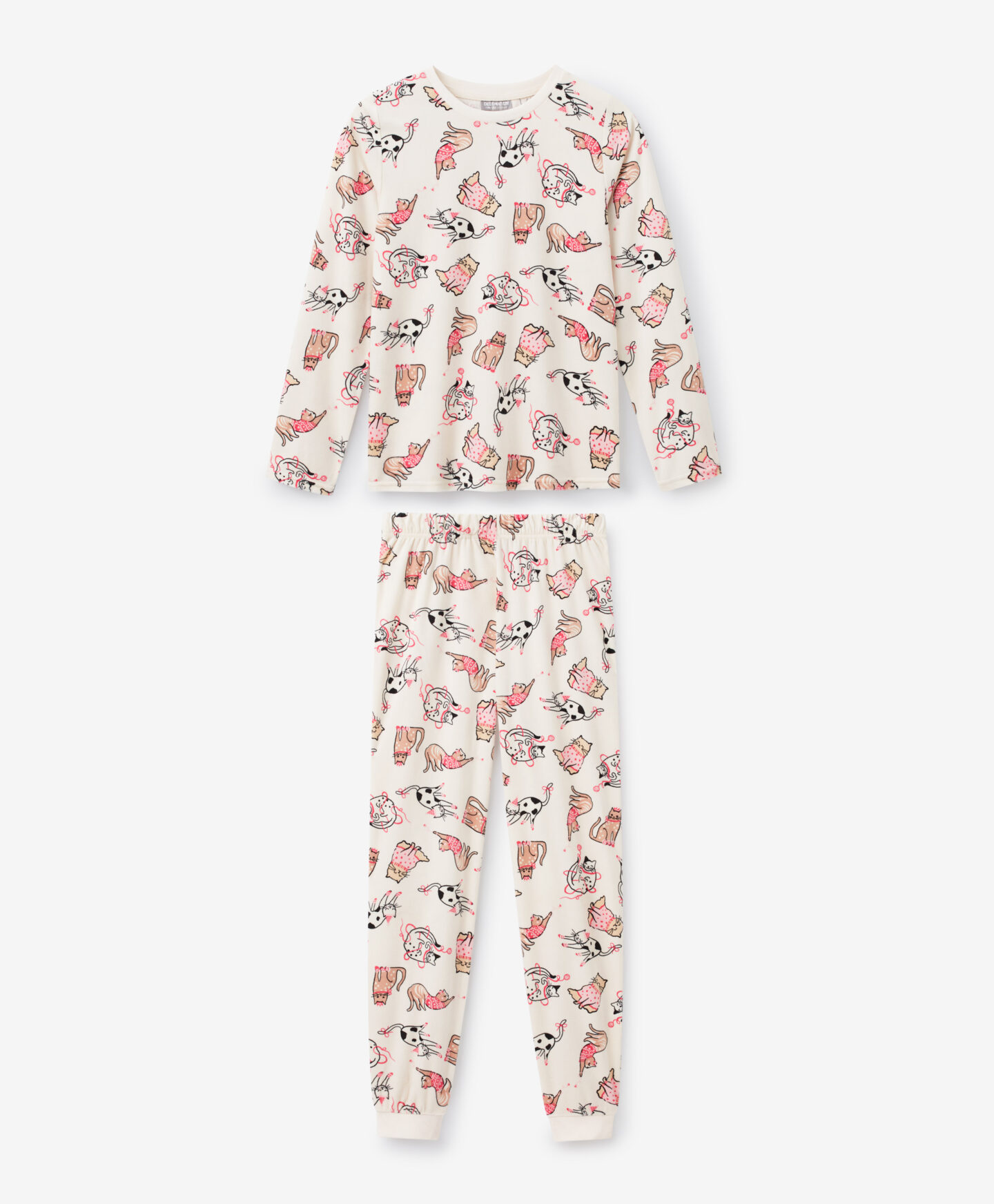 Este pijama infantil de terciopelo con estampado de gatitos es la prenda favorita de los más pequeños. Tiene un tejido suave y agradable al tacto, por lo que ofrece comodidad y libertad de movimiento. Los divertidos estampados de gatos hacen que todos quieran ponérselo antes de dormir. Aporta calor y confort para las noches más frescas.