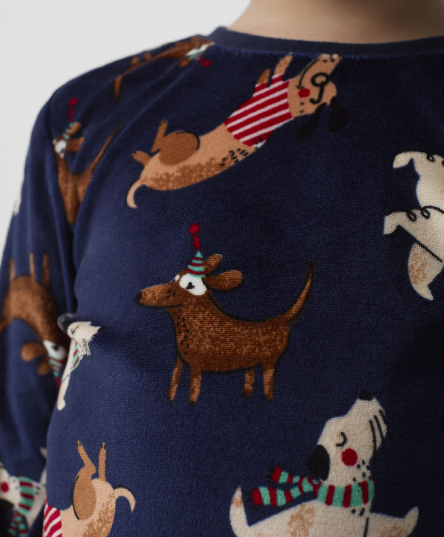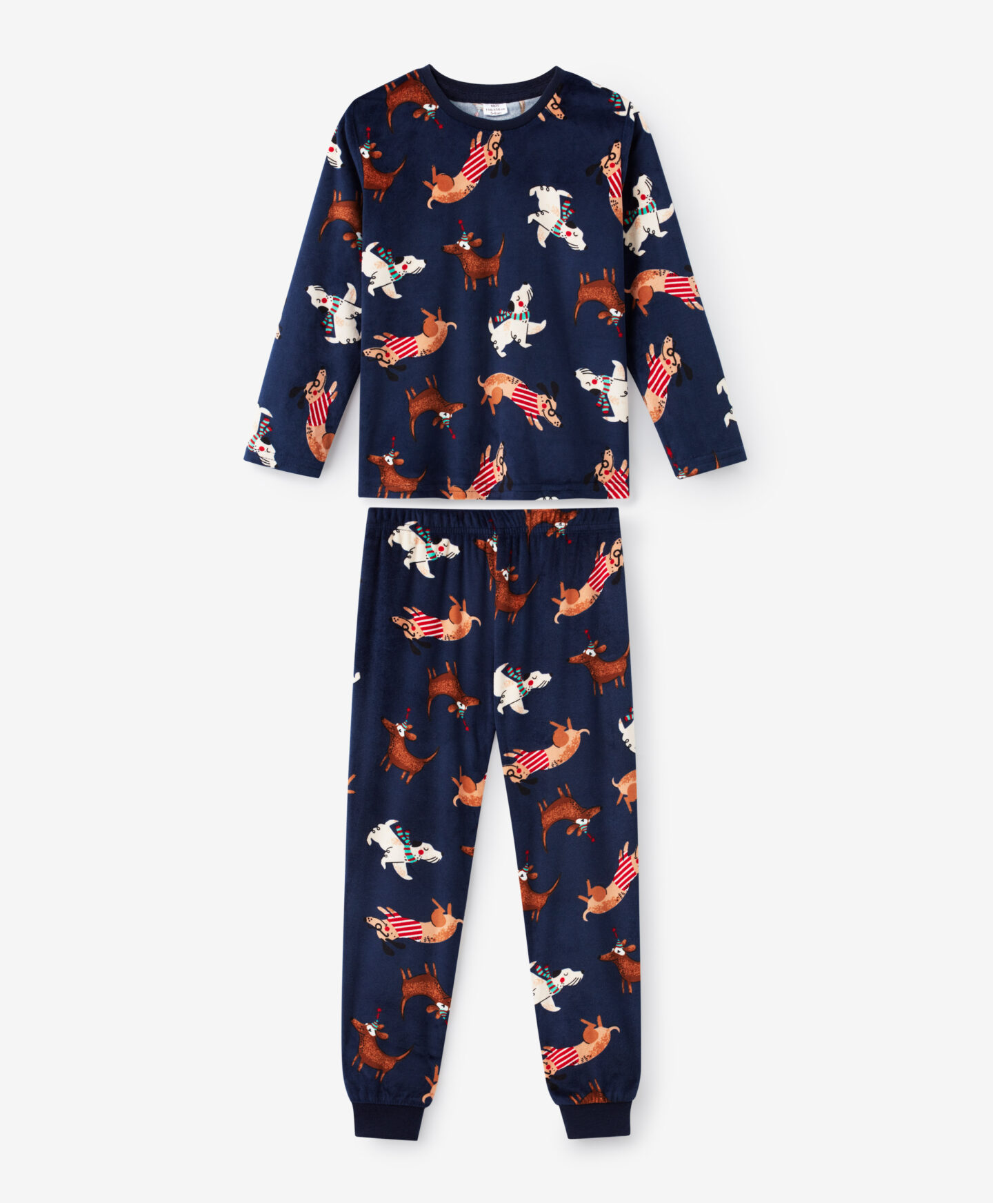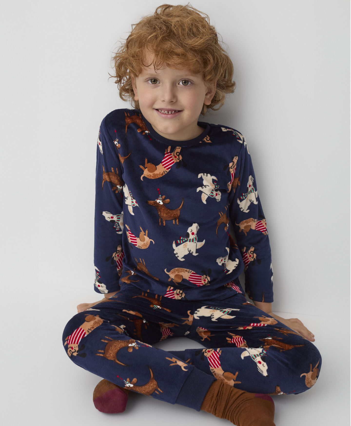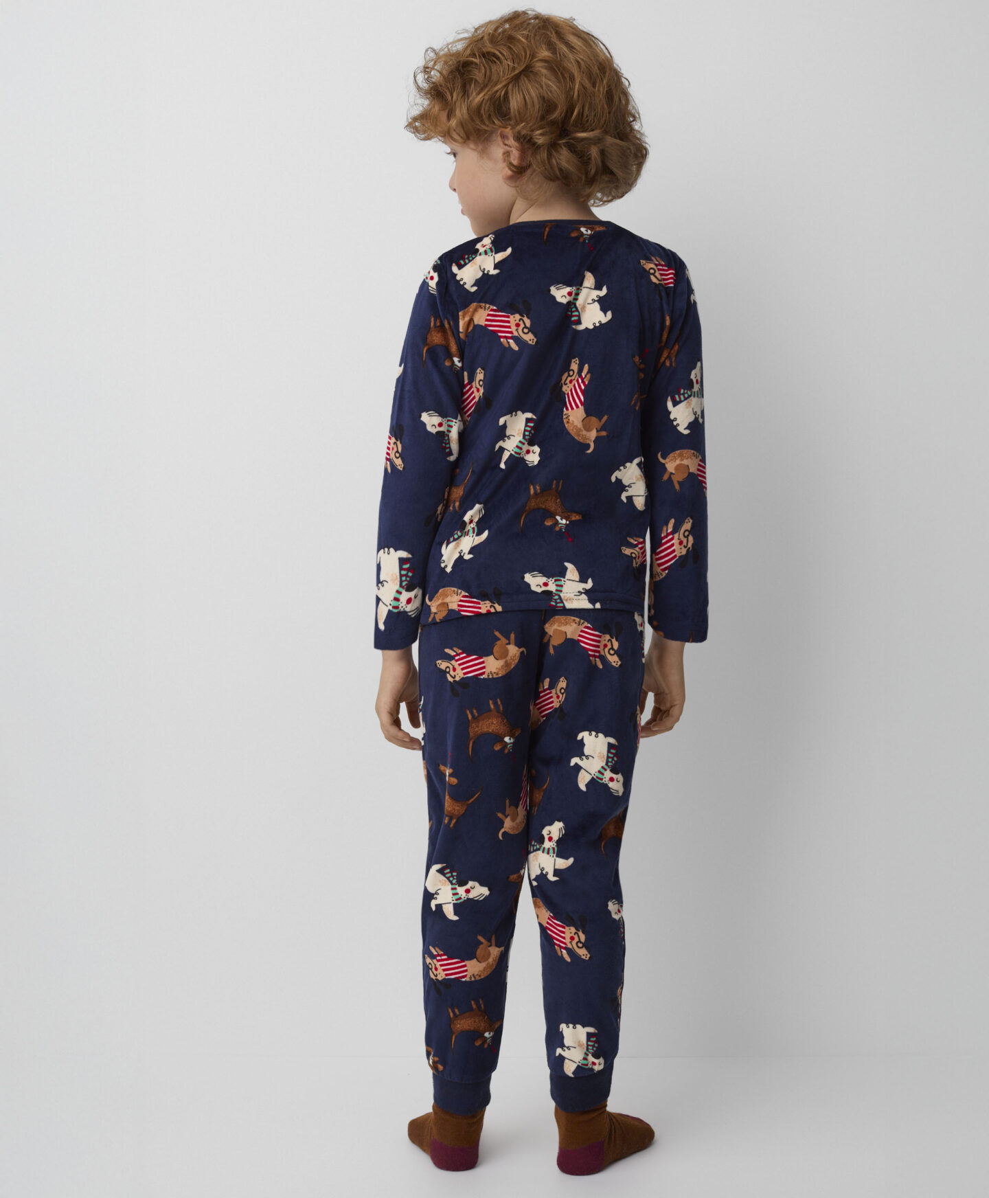 Este pijama infantil de terciopelo con estampado de perritos es la prenda favorita de los más pequeños. Tiene un tejido suave y agradable al tacto, por lo que ofrece comodidad y libertad de movimiento. Los divertidos estampados de perros hacen que todos quieran ponérselo antes de dormir. Aporta calor y confort para las noches más frescas.