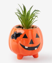 La planta artificial en maceta blanca con forma de calabaza es el toque ideal para ambientar tu hogar en Halloween. Su maceta divertida, inspirada en motivos de la festividad, aporta personalidad y encanto a cualquier rincón. Al ser artificial, no necesita cuidados y mantiene su efecto decorativo toda la temporada, ofreciendo una solución rápida y efectiva para decorar en Halloween.