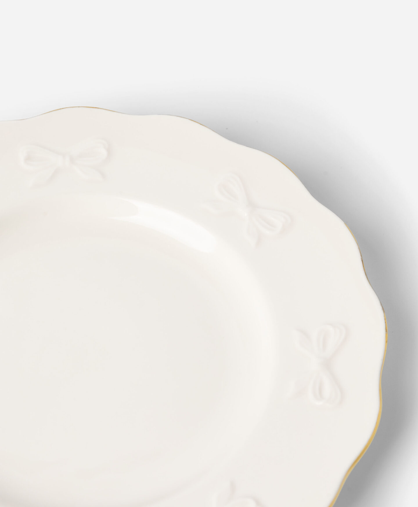 El plato de postre de cerámica con lazos es un elemento elegante para cualquier mesa. Su resistencia, facilidad de limpieza y durabilidad lo hacen perfecto para el uso diario. Ideal tanto para postres como para aperitivos calientes.