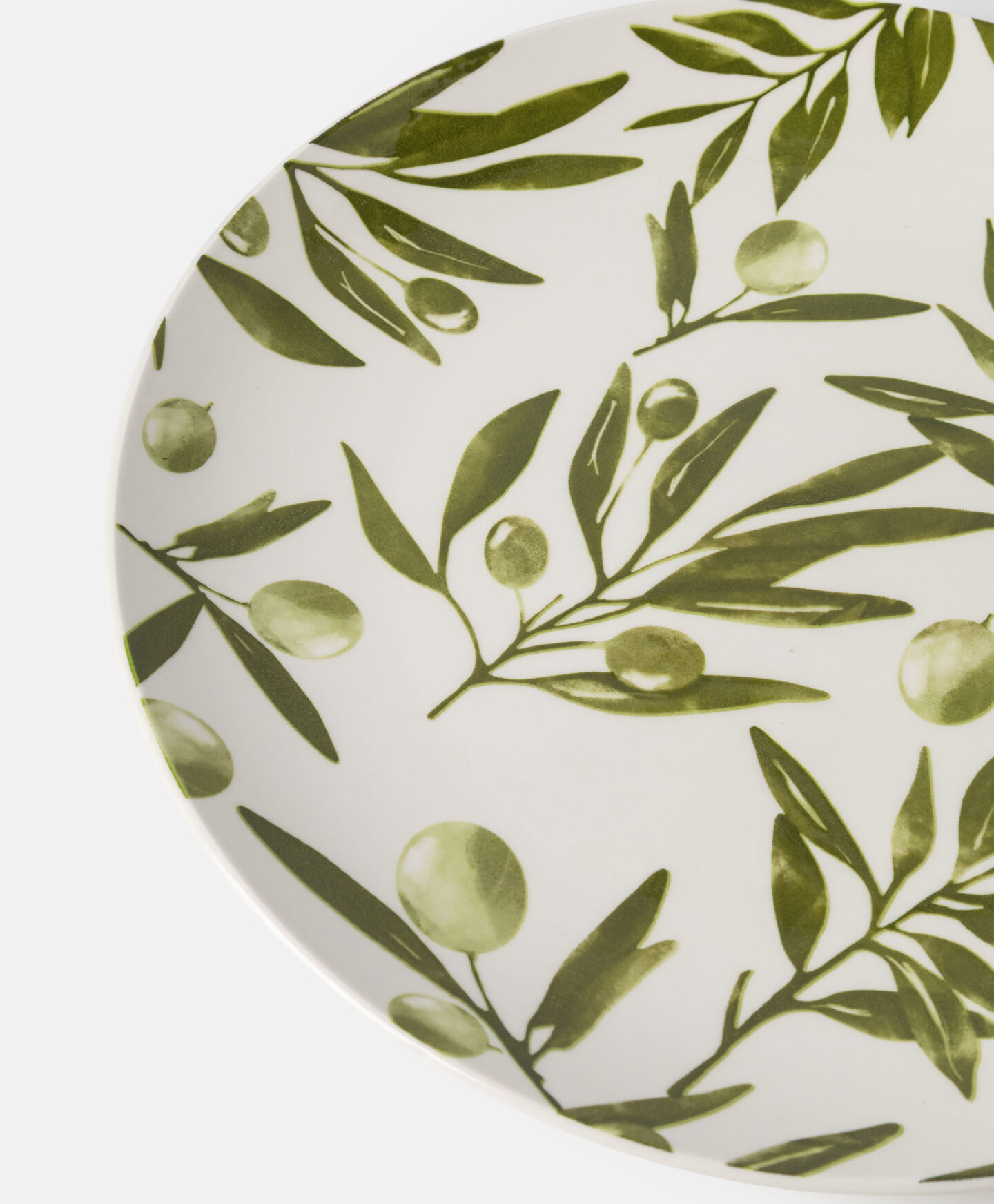 El plato llano de porcelana con estampado de rama de olivo combina resistencia y estilo. Es fácil de limpiar y soporta el uso diario. El motivo artístico aporta un toque especial a la mesa. Es ideal para servir platos principales.