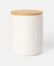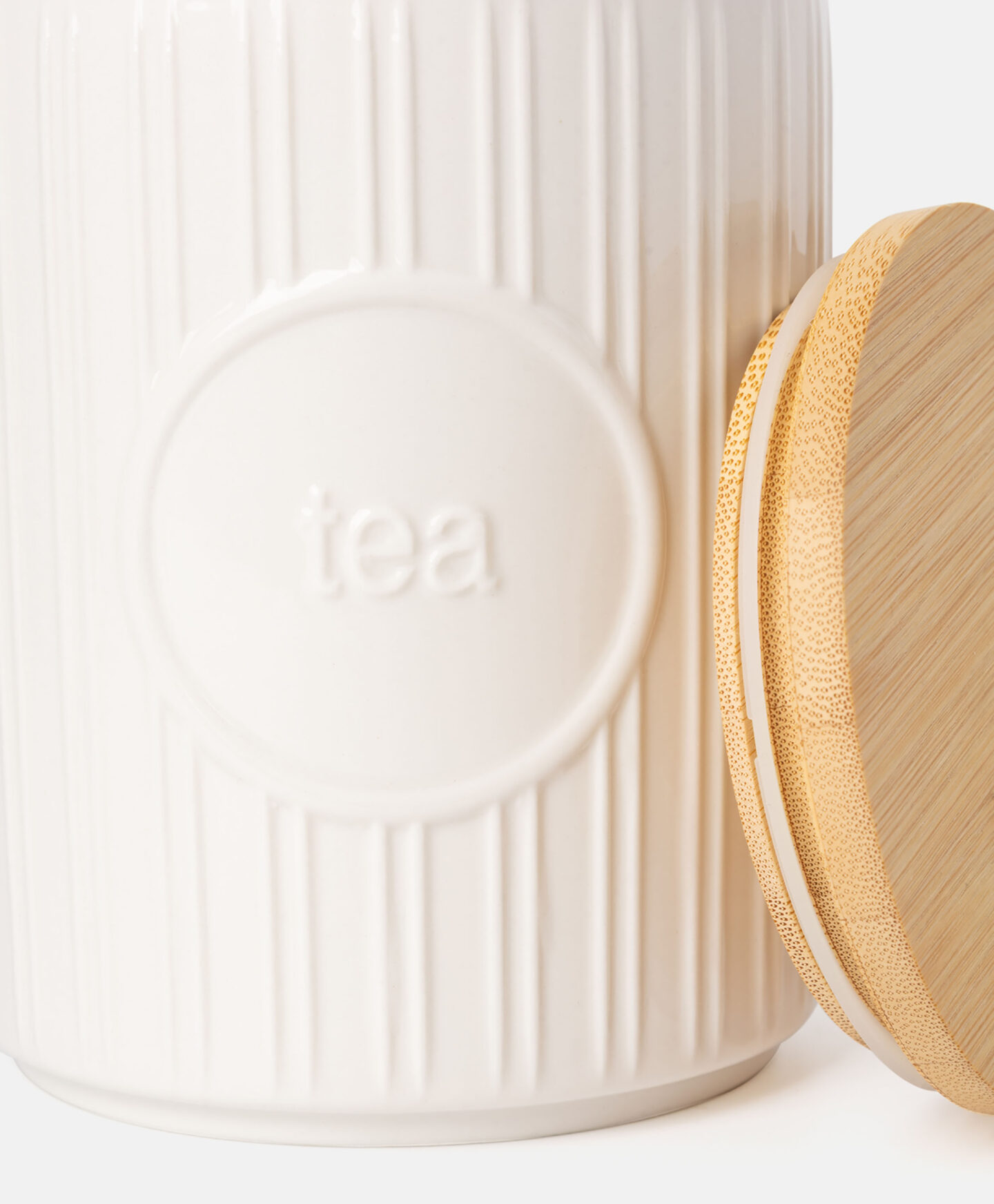 Recipiente de almacenaje con tapa, diseñado como complemento decorativo para la cocina. Está fabricado en gres resistente, por lo que es fácil de limpiar y adecuado para el uso diario. Permite conservar productos secos como cereales, azúcar o café. La tapa hermética protege el contenido frente a la humedad y la suciedad, y su diseño aporta un acabado elegante sobre la encimera.