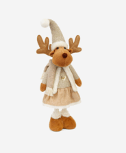 El reno con patas telescópicas sorprende y divierte. Sus piernas alargadas le dan un toque único que destaca en cualquier decoración. Un detalle ligero y lleno de humor navideño.