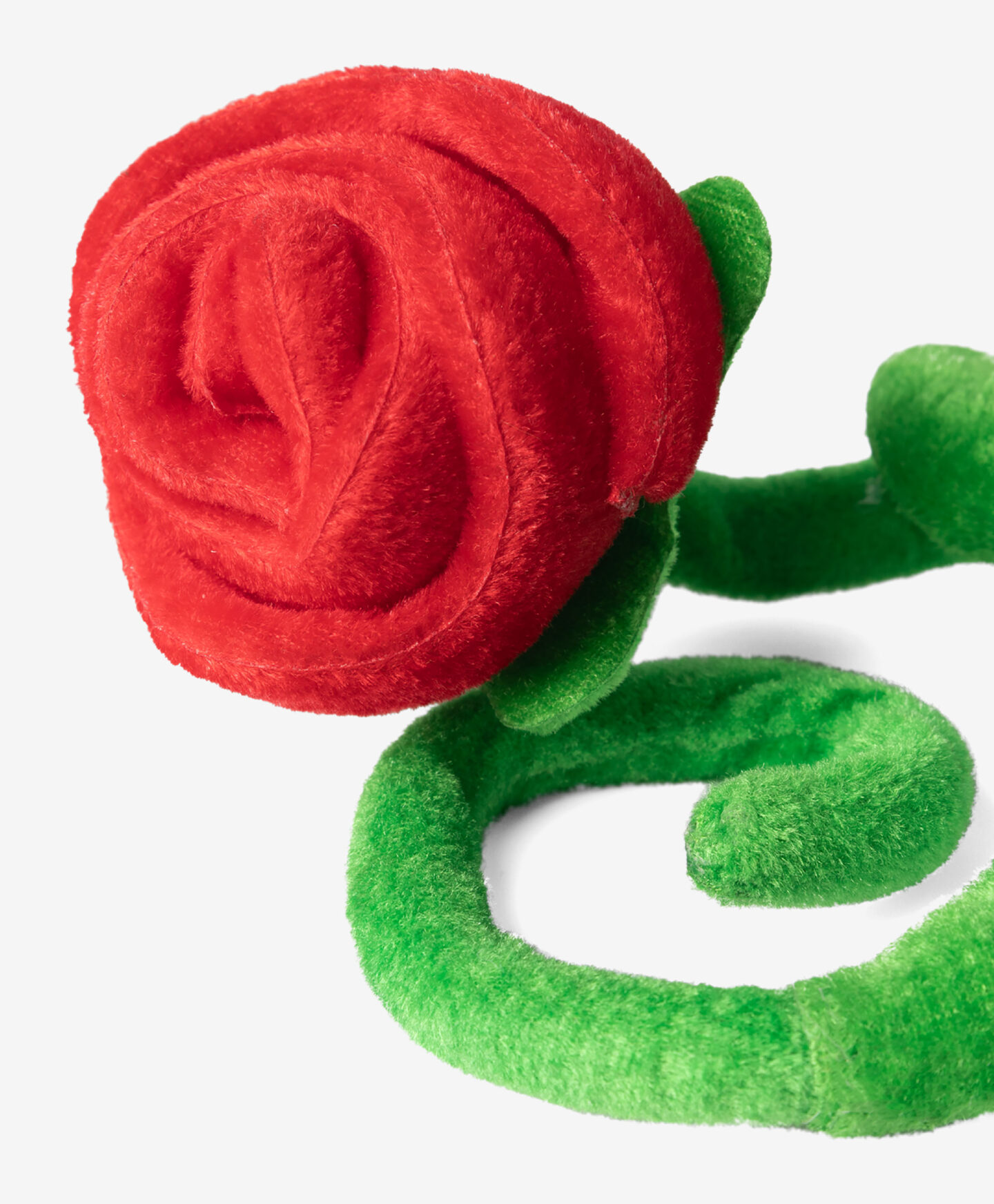 Rosa roja de peluche con tallo flexible, una alternativa duradera a las flores naturales. No se marchita y mantiene su aspecto durante mucho tiempo. El tallo moldeable permite usarla como decoración o detalle original. Disponible en dos colores.