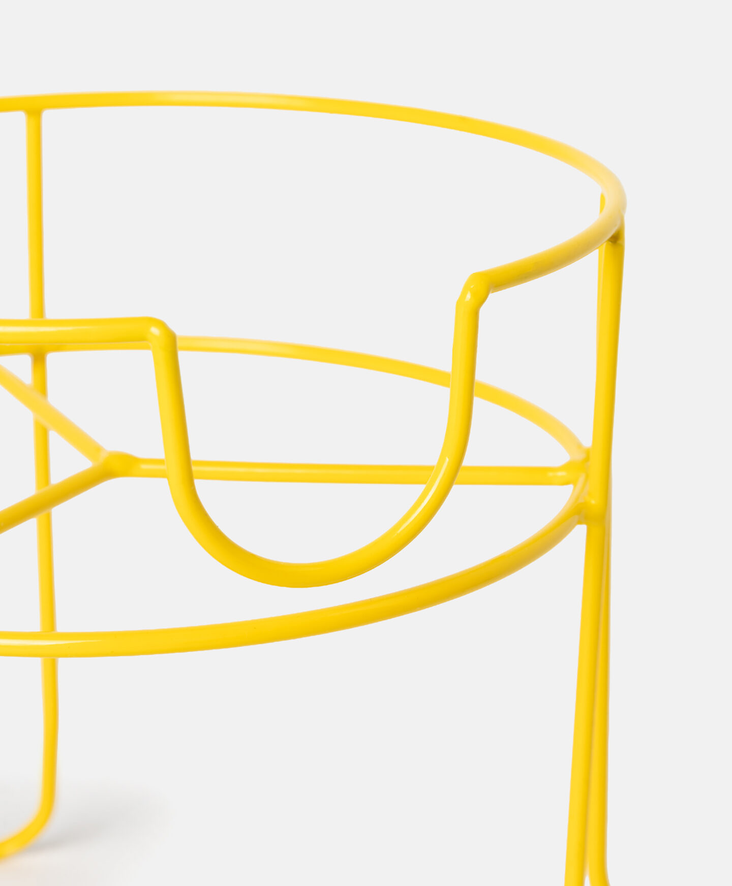 Este soporte para tarro amarillo aporta un toque de color y funcionalidad a la mesa. Fabricado en hierro resistente, permite colocar el tarro de forma estable y cómoda.