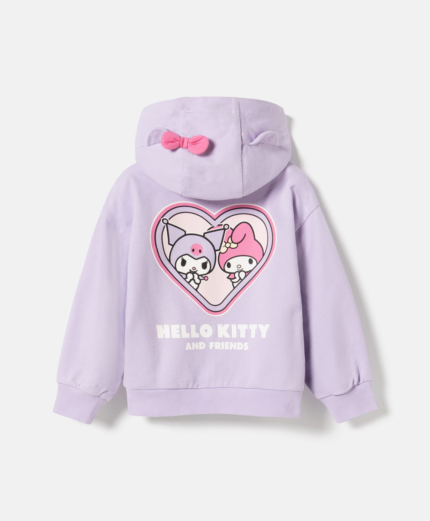 Sudadera de Hello Kitty & Friends que destaca por su estampado en la espalda y su lazo 3D en la capucha. El cierre con cremallera facilita vestirse con autonomía. Combina muy bien con vaqueros, mallas o falda. Es una prenda versátil y fácil de llevar.