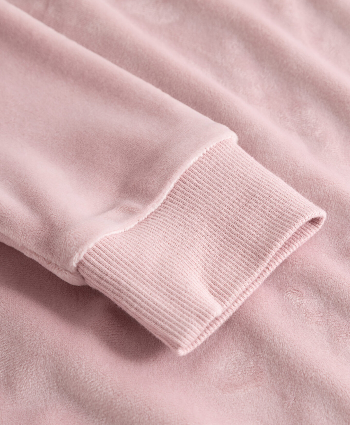 Sudadera de terciopelo diseñada para disfrutar de la comodidad. La capucha amplia protege del frío y del viento. El terciopelo brilla suavemente, resulta resistente y muy agradable al tacto.