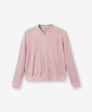 Sudadera de terciopelo rosa pensada para un look cómodo y con estilo. El terciopelo es suave, resistente a las arrugas y cae con elegancia. El cierre con cremallera permite variar el estilo, cerrada como sudadera clásica o abierta sobre un top para lograr un look más deportivo.