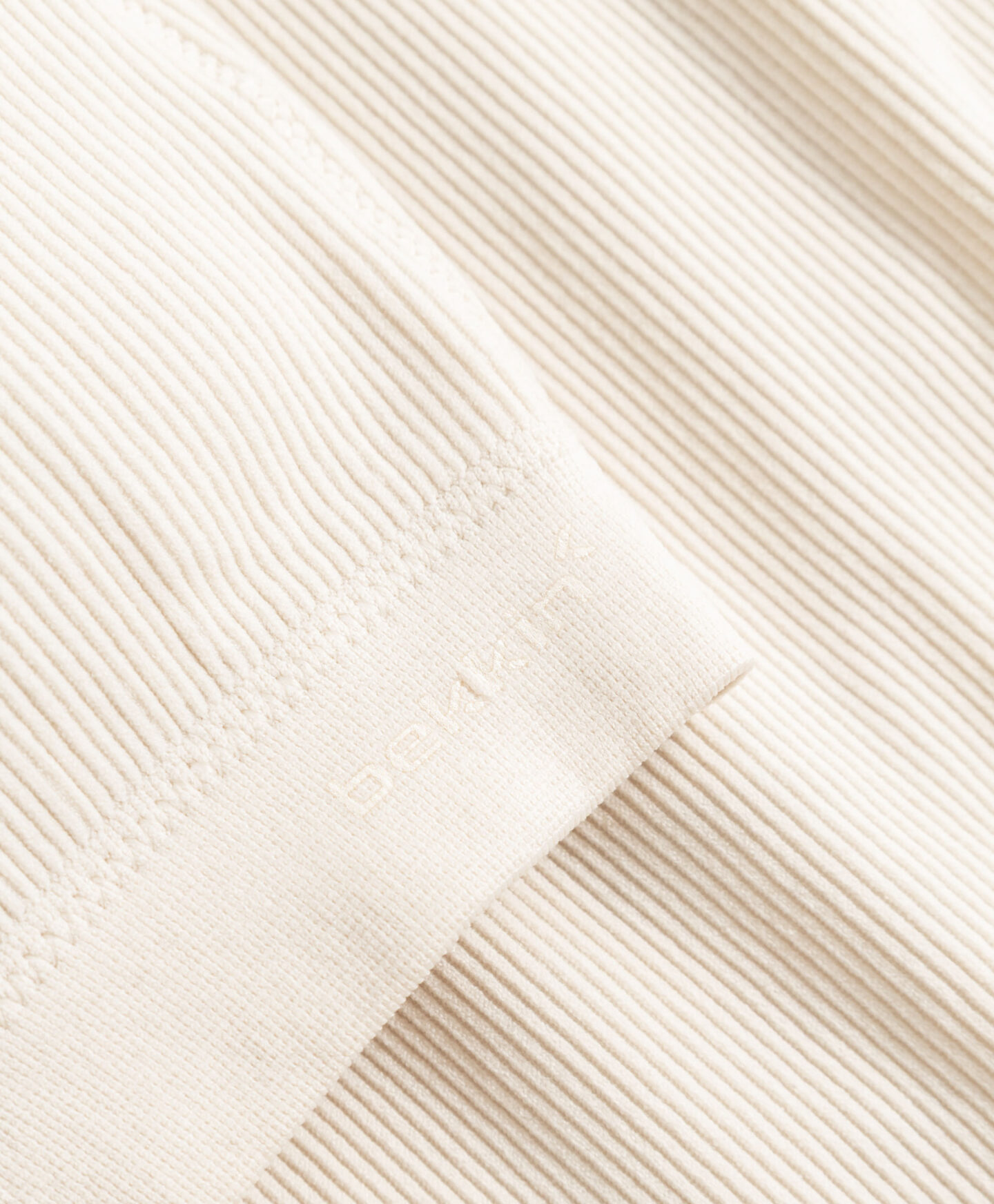 El sujetador deportivo Bekkin en color beige es ideal para entrenamientos, yoga o running. Ofrece buena sujeción y un ajuste cómodo. La confección sin costuras reduce el riesgo de rozaduras incluso en sesiones intensas. Una opción cómoda y estilosa.