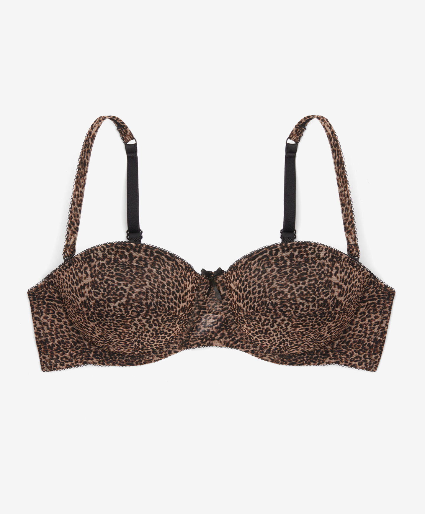 El sujetador tipo balconette con aros y estampado de leopardo ofrece una sujeción perfecta y realza el escote. Es una opción ideal para llevar con prendas ajustadas y de corte profundo. Su estampado de leopardo llena tu día de confianza y seguridad.