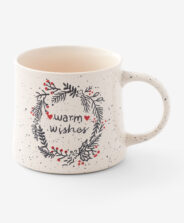 La taza con diseño de corona navideña conquista a los amantes de las bebidas de invierno. Convierte un momento cualquiera en una pausa agradable y festiva.