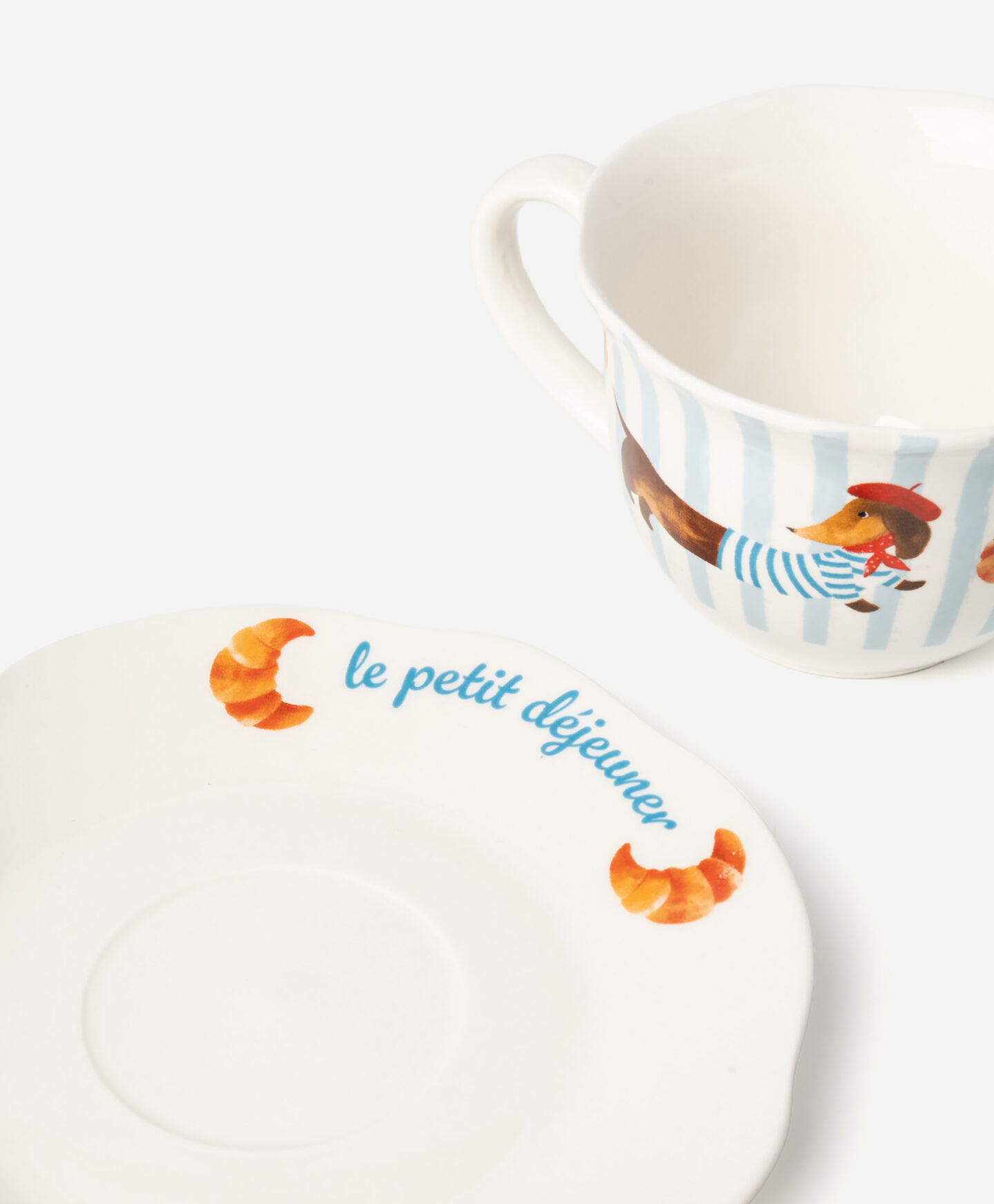 Esta taza de gres con plato presenta un encantador diseño con un elegante perro salchicha con boina. Perfecta para servir cappuccino con espuma de leche, café solo o té aromático. Su paleta de colores suave aporta un toque especial a tu cocina y sorprende a tus invitados. El gres es duradero, fácil de limpiar y conserva su encanto con el paso del tiempo. Puedes encontrar más piezas a juego en nuestra colección.
