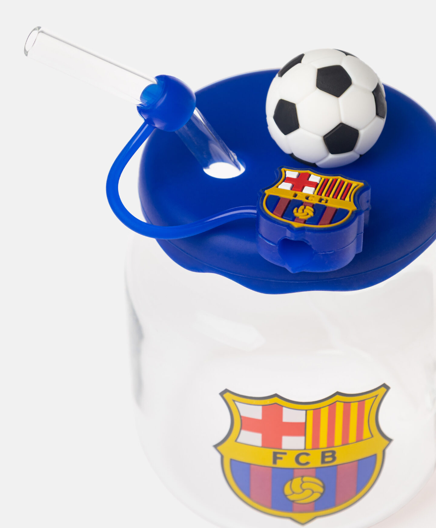 La taza del FC Barcelona es ideal para disfrutar de cualquier bebida con un toque original. Este diseño con tapa y pajita protege el contenido y facilita su uso, además de ser fácil de limpiar.