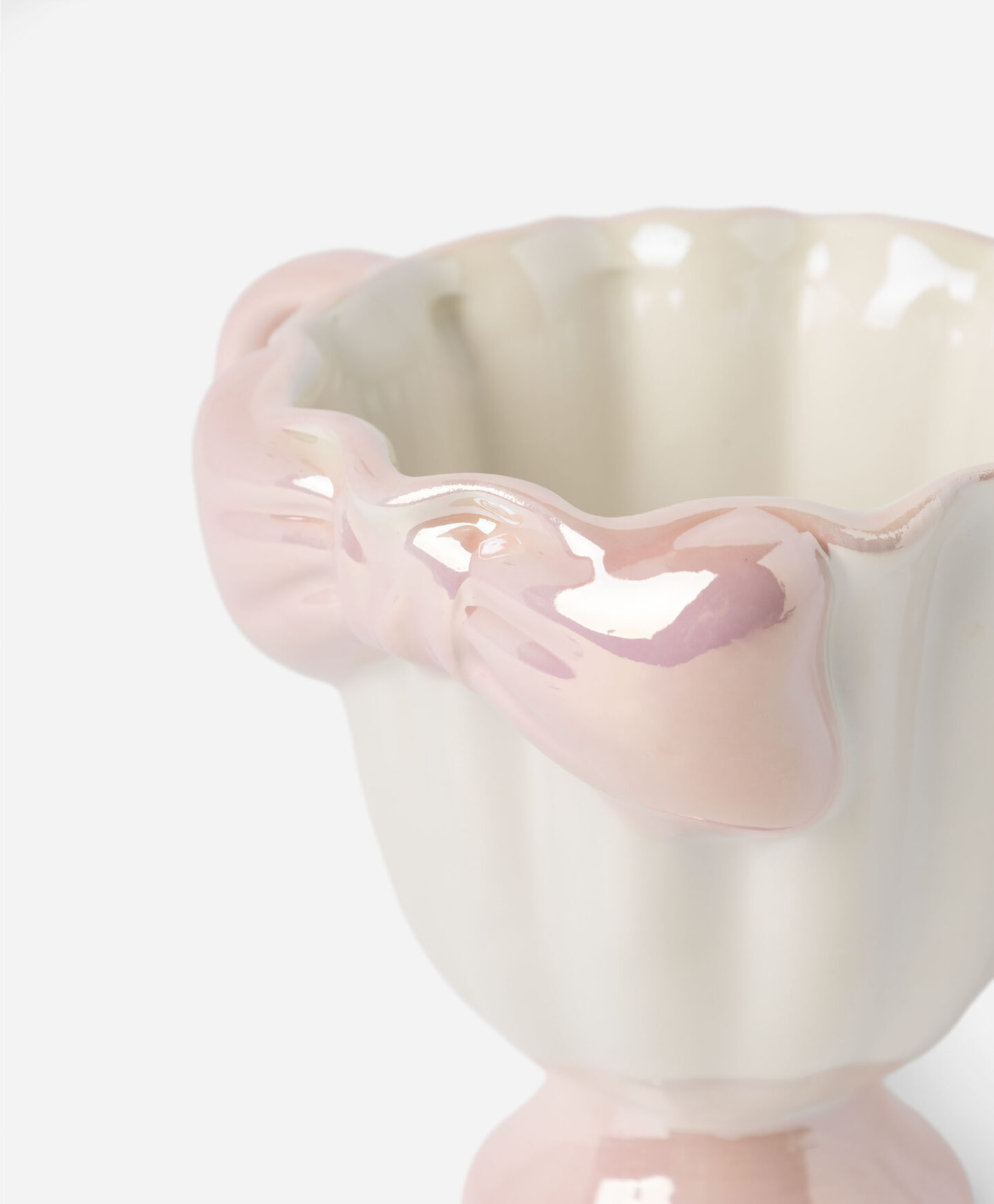 La taza perlada con lazo es un complemento elegante para tu vajilla. Su acabado nacarado refleja la luz de forma delicada. El lazo decorativo aporta un toque especial, ideal para disfrutar de tu bebida favorita o como regalo.
