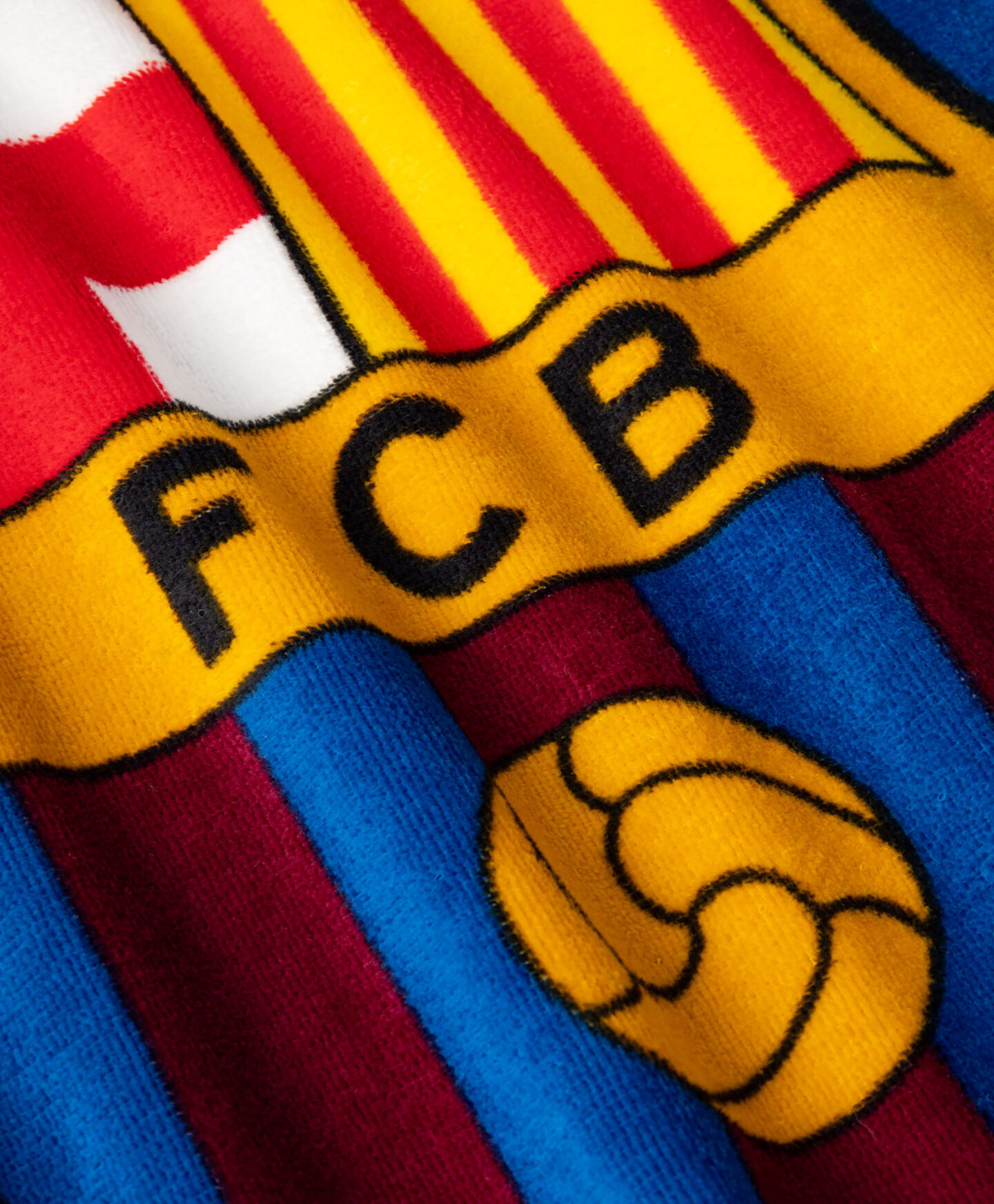 La toalla del FC Barcelona es imprescindible para disfrutar del verano con estilo. Este diseño de gran tamaño en 100% algodón ofrece un tejido suave y agradable, ideal para la playa o la piscina.