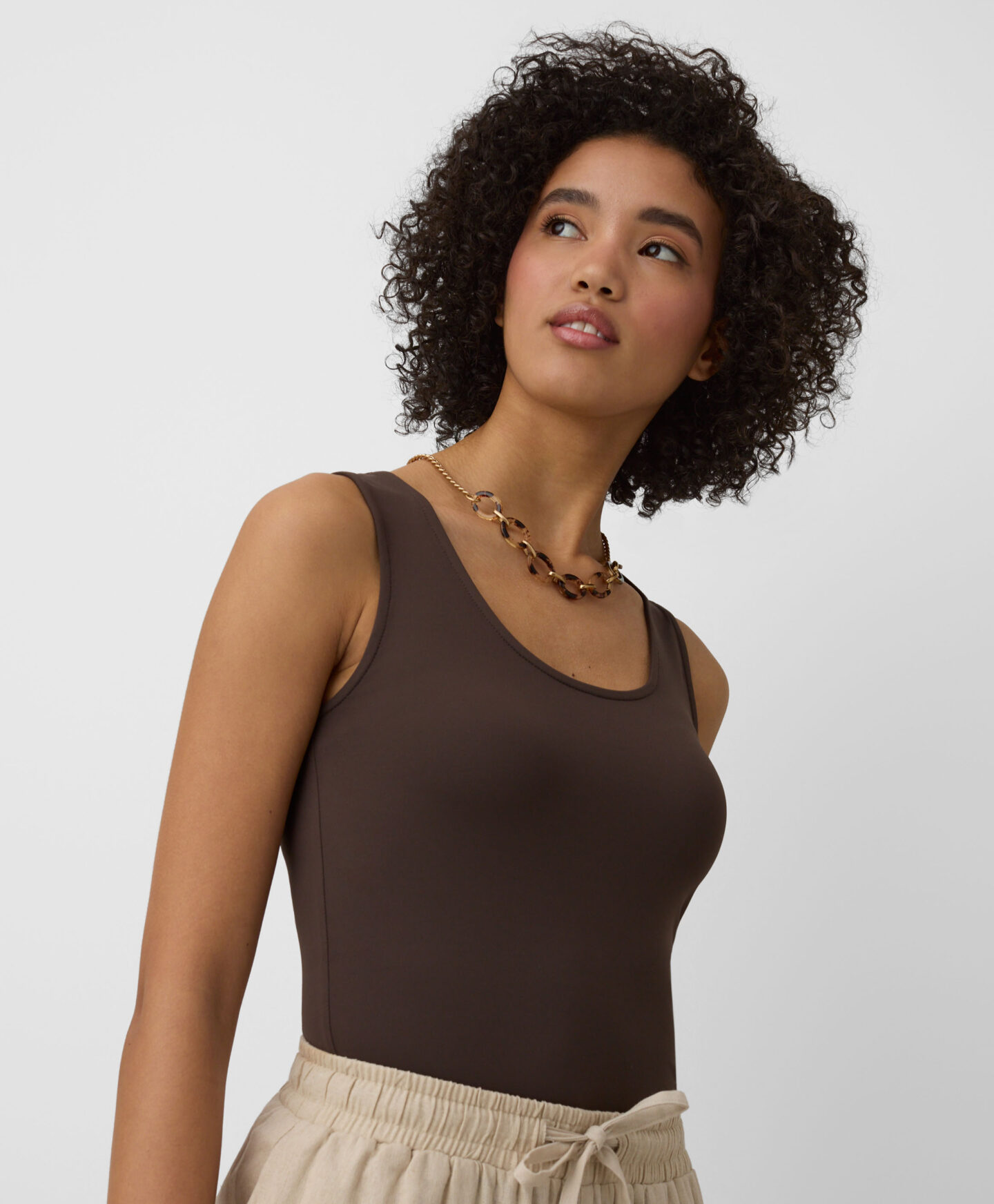 El top de tirantes es una prenda clave por su versatilidad en el día a día. Combina fácilmente con vaquero, pantalón chino, pantalón corto o deportivo. Se puede llevar bajo chaqueta o sudadera. Su tejido suave y color liso lo convierten en la base perfecta para cualquier look. Disponible en tres colores.