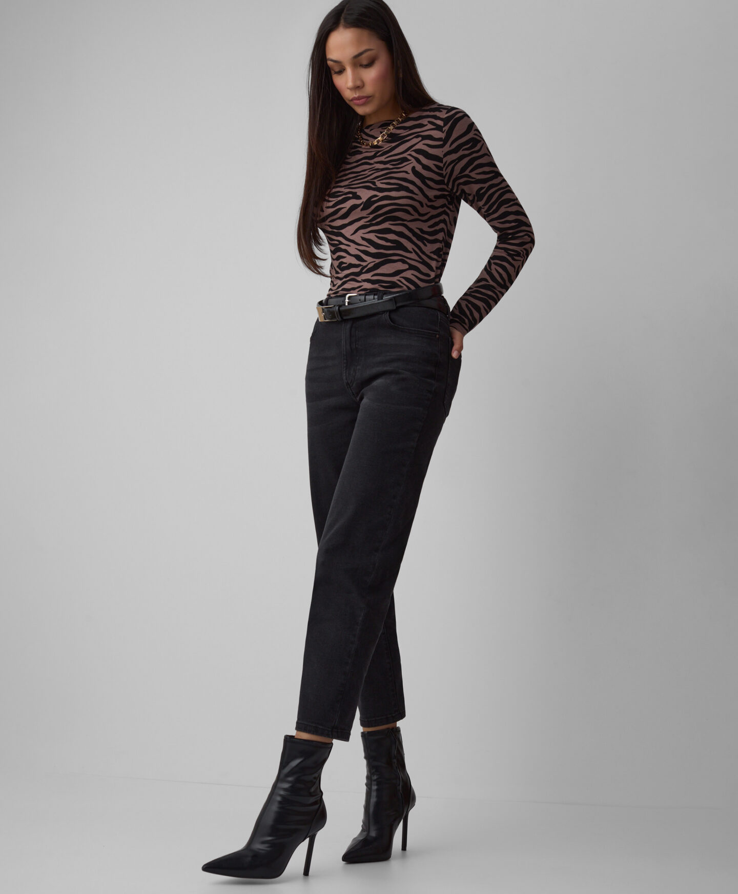Los vaqueros corte mom son un clásico que combina comodidad y estilo. Perfectos para el día a día, combinan con camisetas holgadas, jerséis informales o camisas más elegantes. Su color negro clásico permite crear múltiples estilismos.