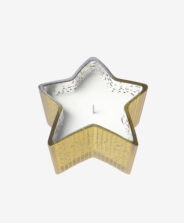 La vela aromática en tono dorado ilumina el interior con un resplandor cálido. Su recipiente con forma de estrella la convierte en una pieza decorativa para mesa o cómoda. Aúna función decorativa y toque aromático para un ambiente navideño.