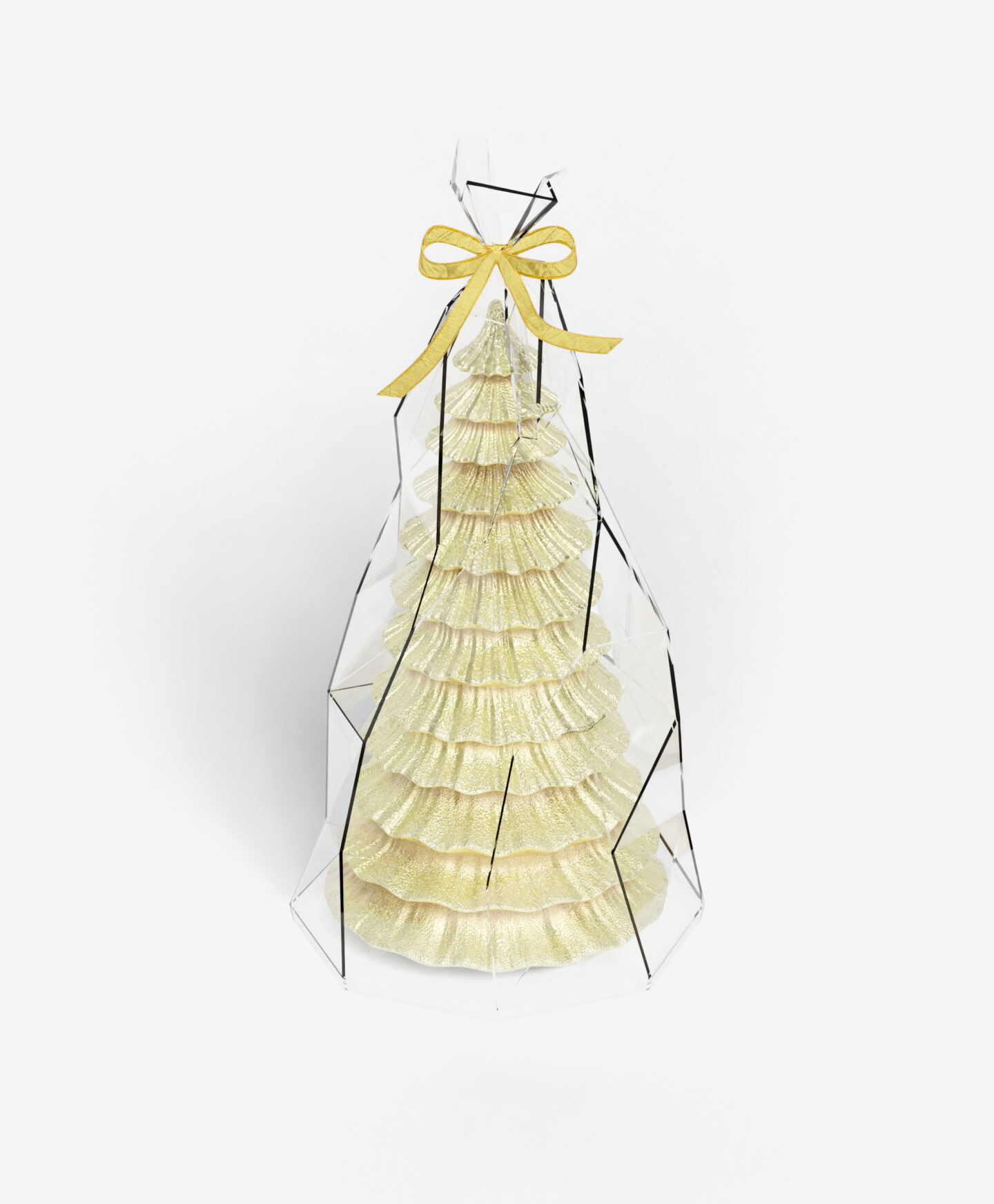 La vela con forma de árbol de Navidad en tono dorado llena de brillo festivo el interior de tu hogar. Sus reflejos cálidos añaden elegancia y encanto incluso a la decoración más sencilla. Esta pieza convierte una tarde cualquiera en un momento lleno de magia y ganas de celebrar.