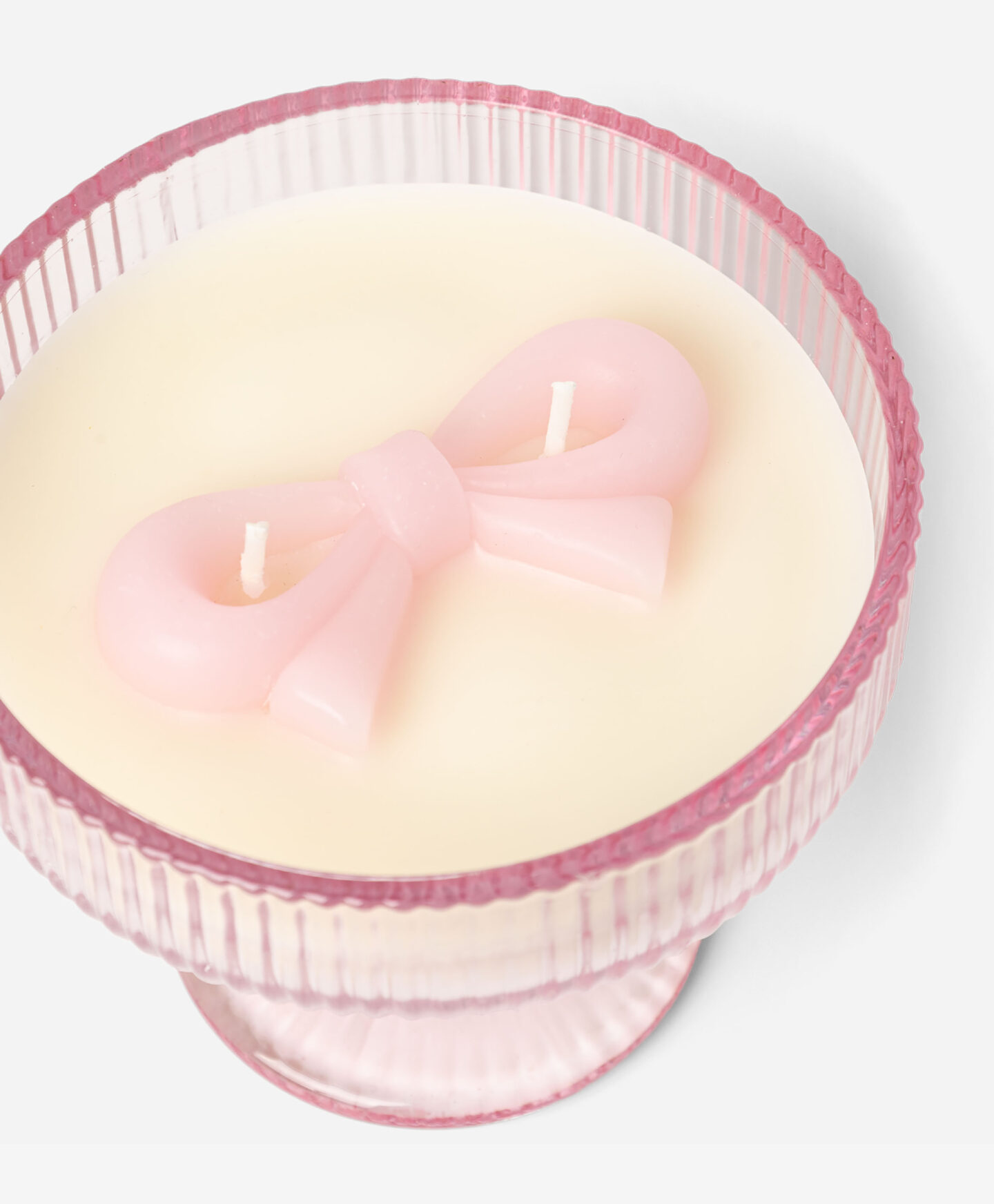 La vela perfumada en vaso de cristal con lazo destaca por su aroma y su larga duración. Presentada en un elegante recipiente de cristal, combina con distintos estilos decorativos. Es una idea de regalo perfecta para amantes de los detalles bonitos.