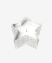 La vela aromática en tono plateado ilumina el interior con un resplandor cálido. Su recipiente con forma de estrella la convierte en una pieza decorativa para mesa o cómoda. Aúna función decorativa y toque aromático para un ambiente navideño.