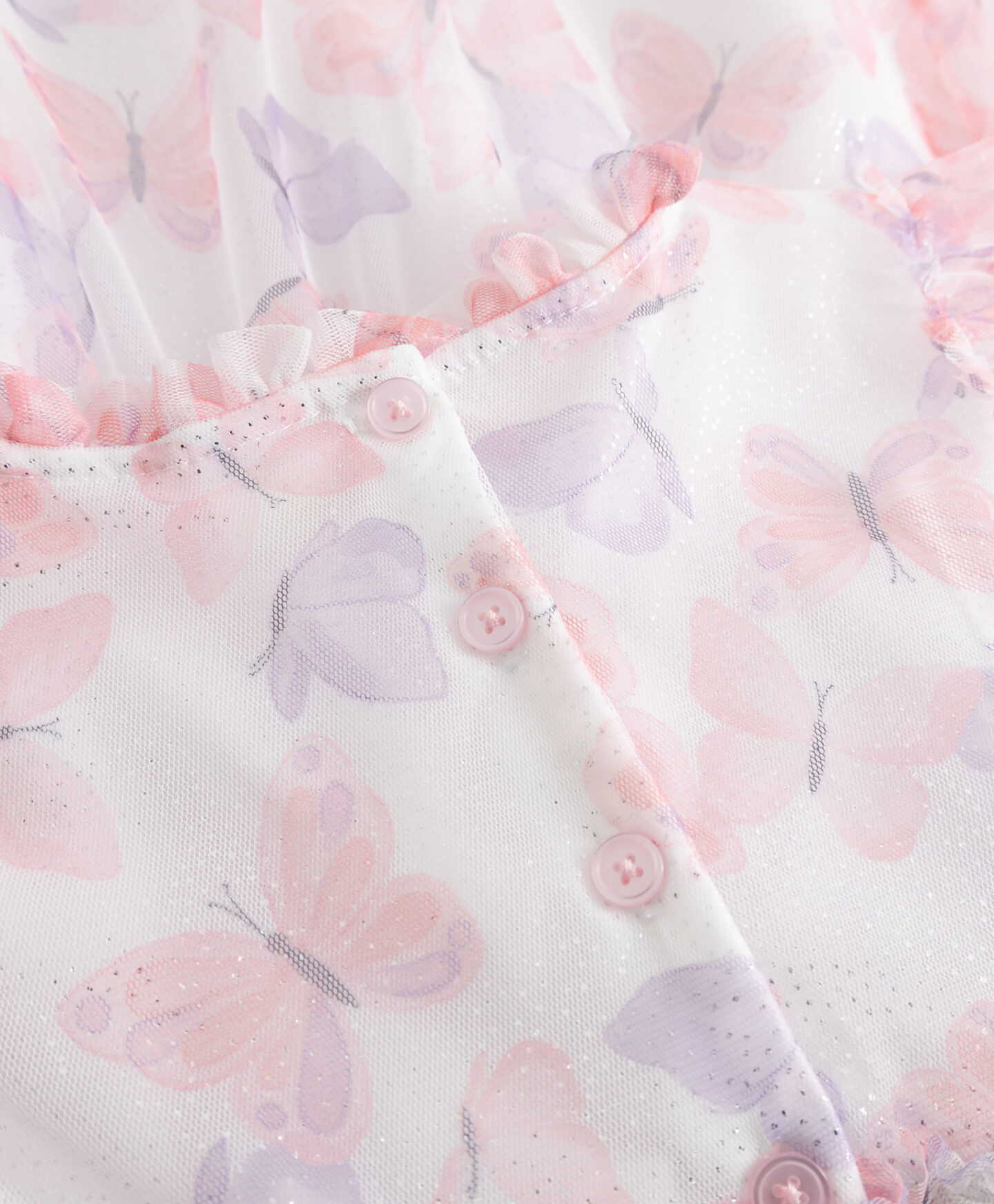 El vestido con estampado de mariposas destaca por su estilo romántico. El tul ligero y transpirable garantiza comodidad incluso en días cálidos. Las mangas fluidas y el cuello con volantes añaden elegancia. Los detalles decorativos crean un look delicado. Los pequeños puntos brillantes reflejan la luz del sol y aportan un toque especial.