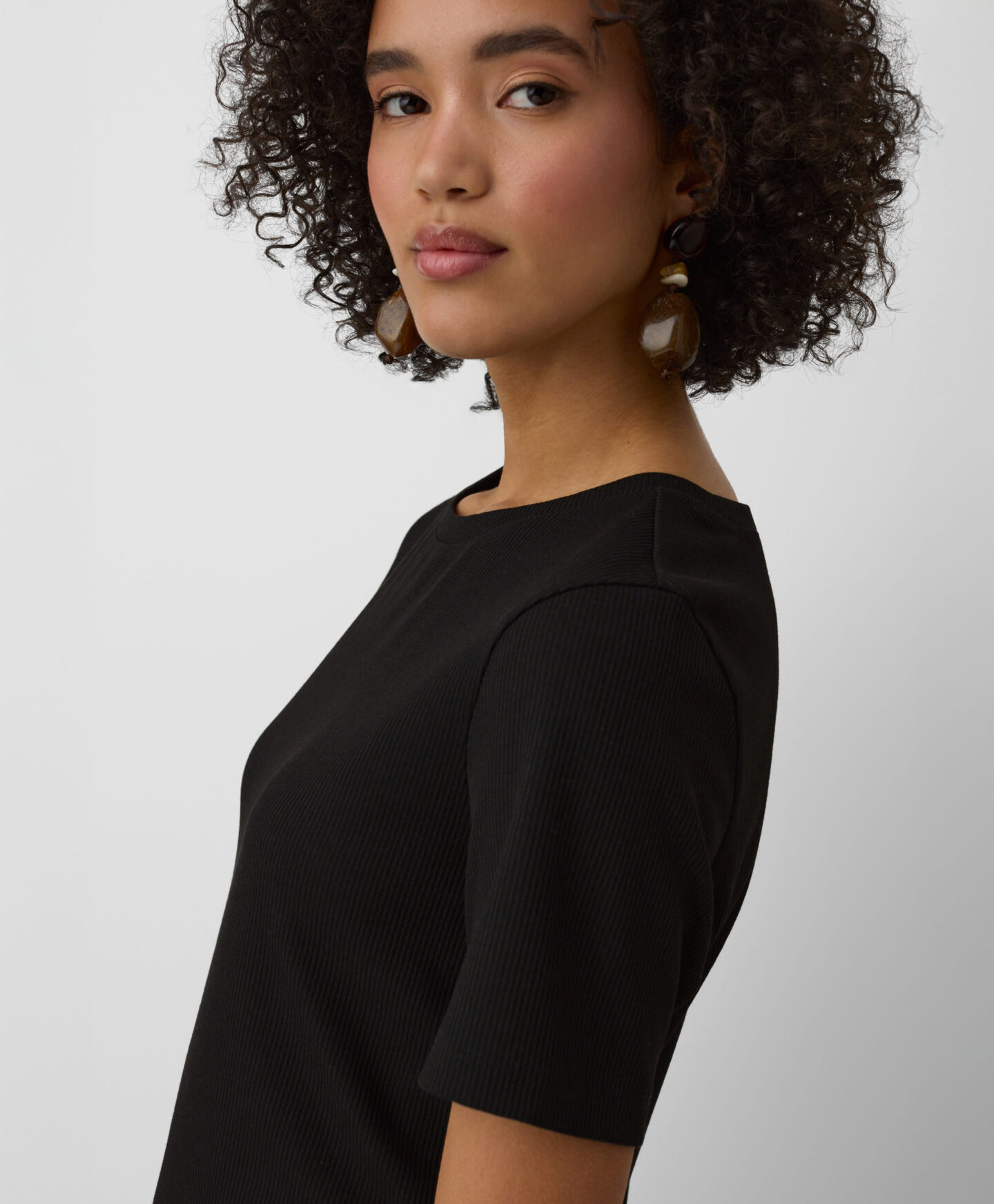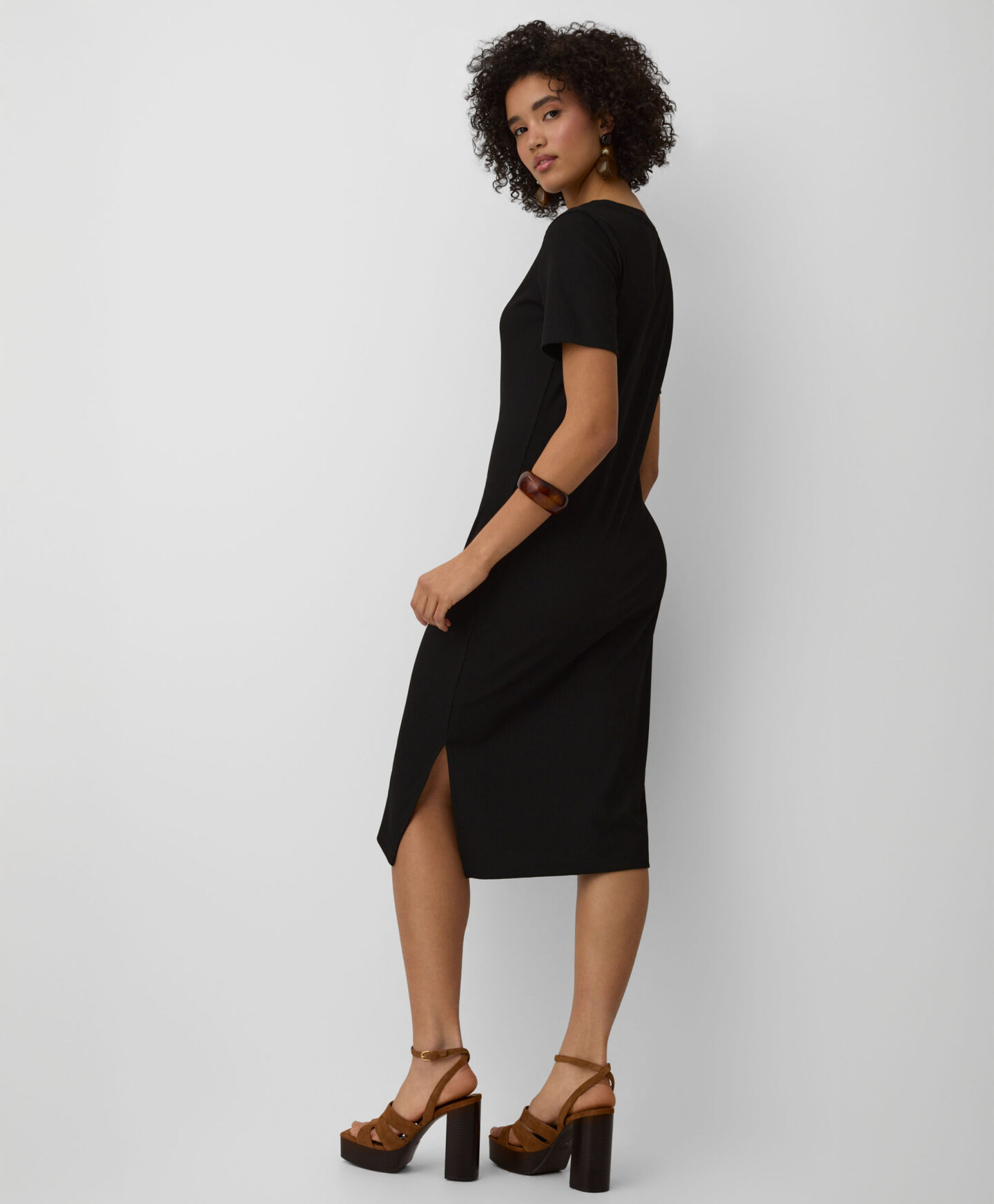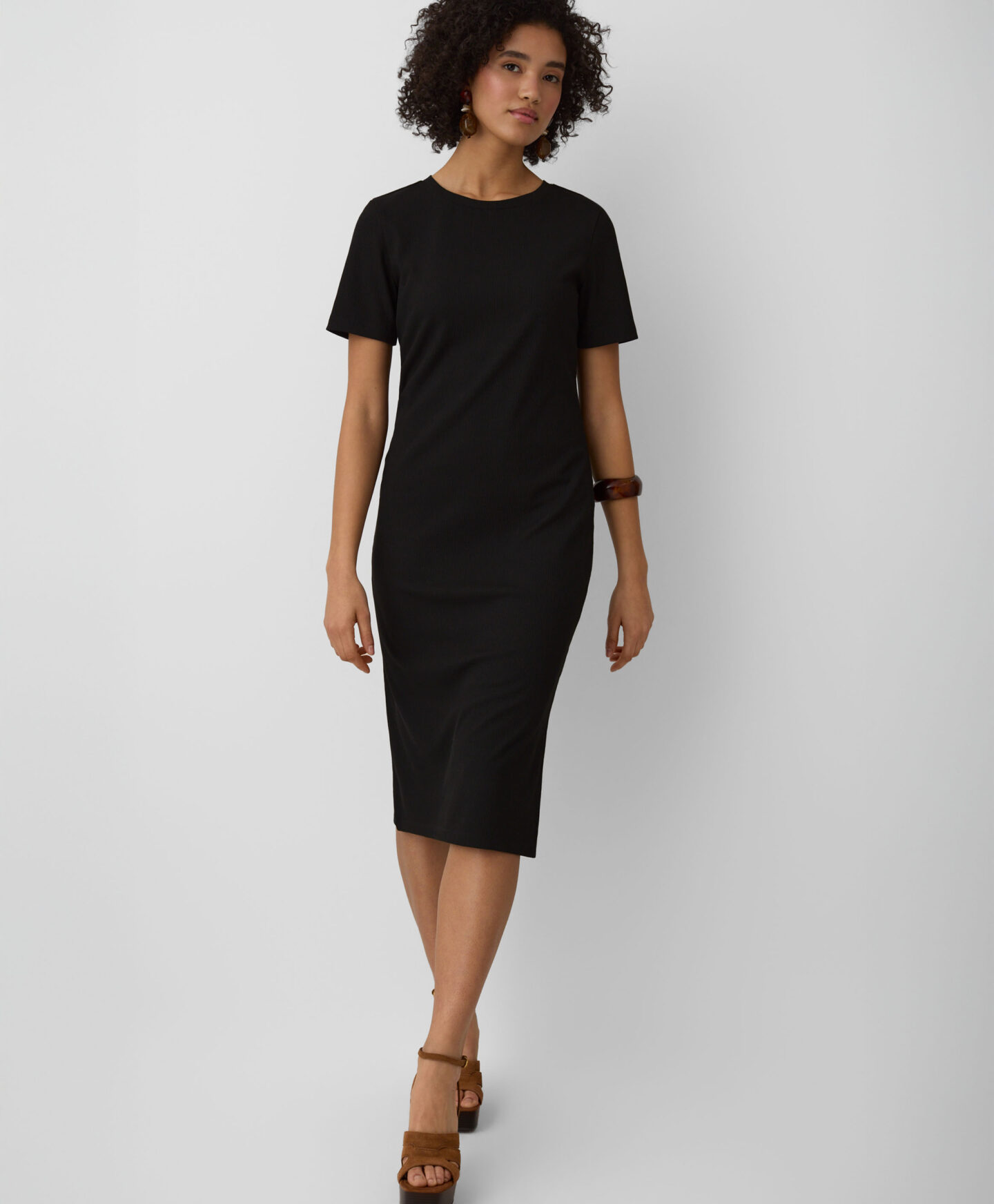 El vestido de rayas finas destaca por su versatilidad y estilo atemporal. El color negro estiliza visualmente la silueta y el corte clásico favorece el ajuste. El tejido suave aporta gran comodidad. Es perfecto tanto para el día a día como para ocasiones especiales.
