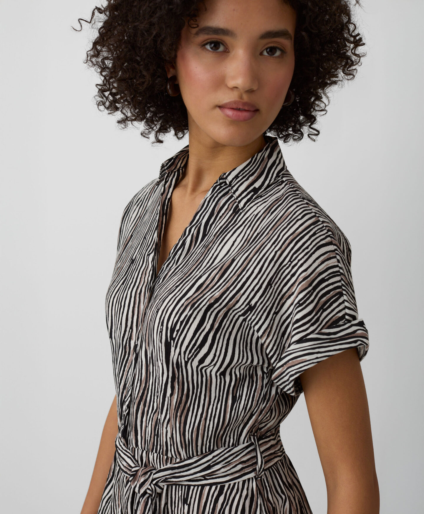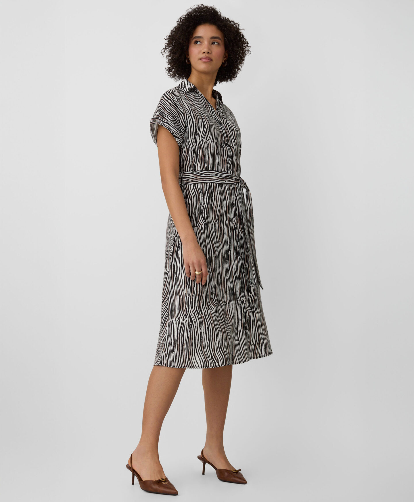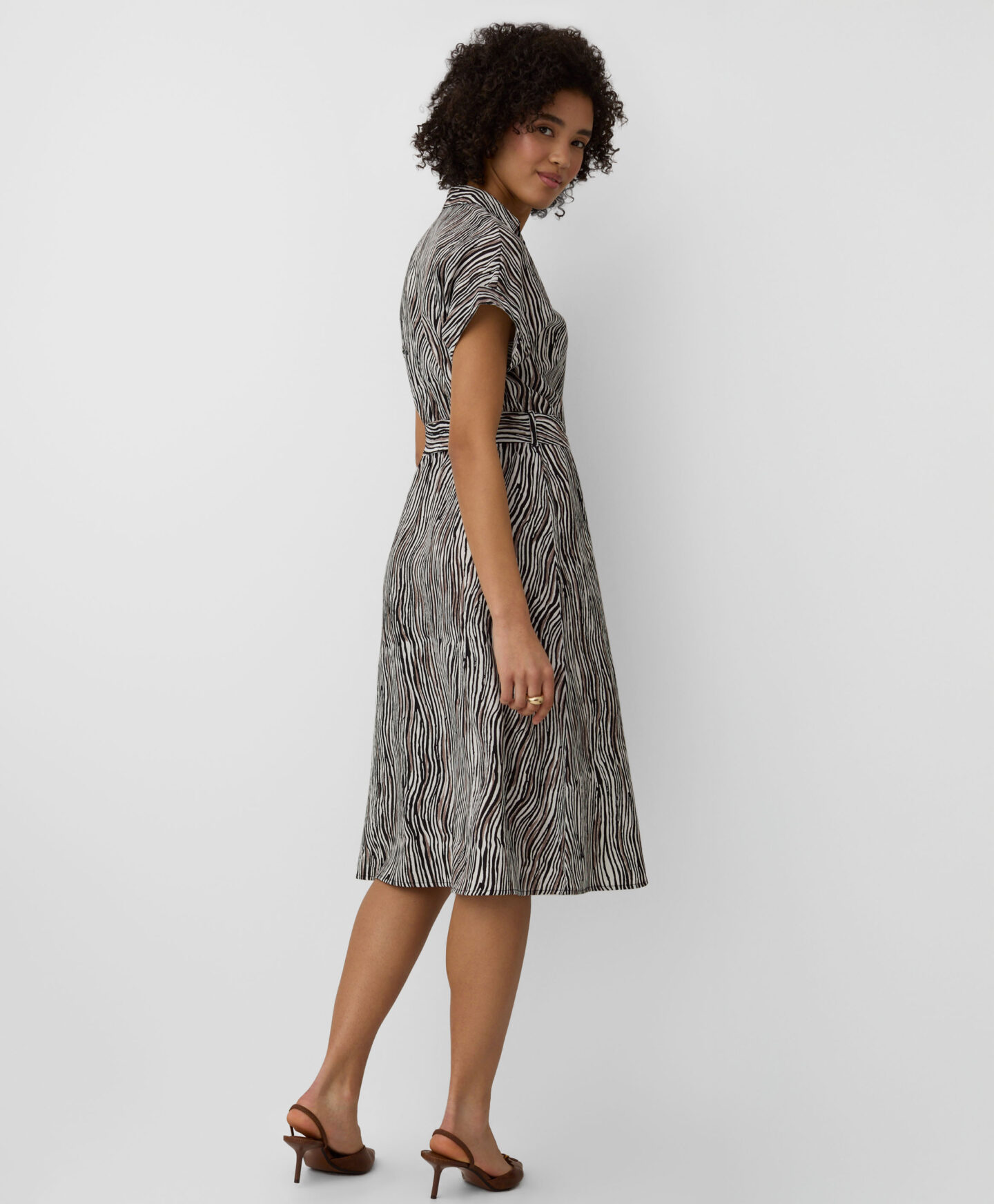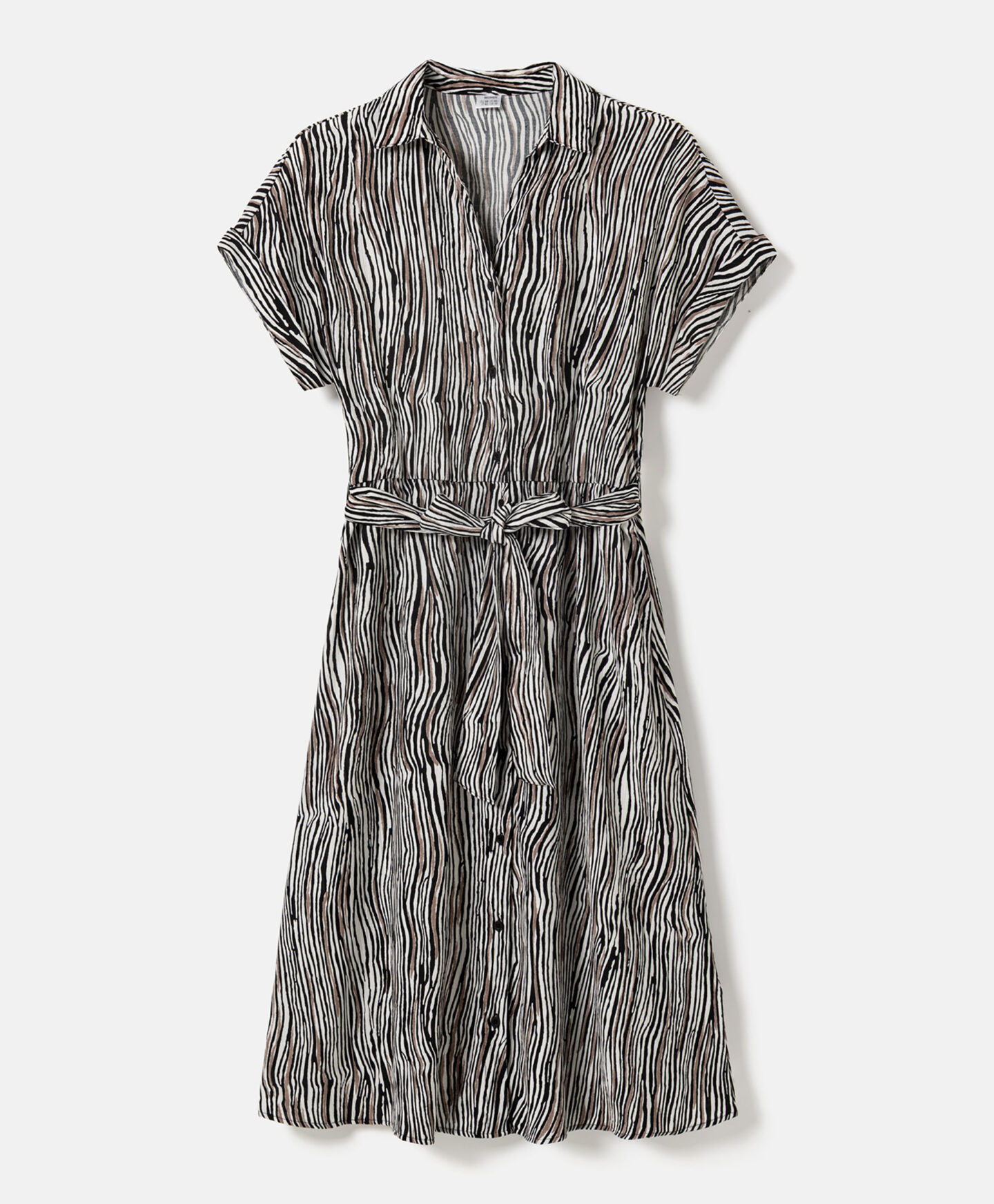El vestido atado con alto contenido en viscosa es perfecto tanto para el día a día como para ocasiones más especiales. El ajuste en la cintura aporta comodidad y realza la silueta sin limitar el movimiento. El estampado animal añade un toque llamativo.