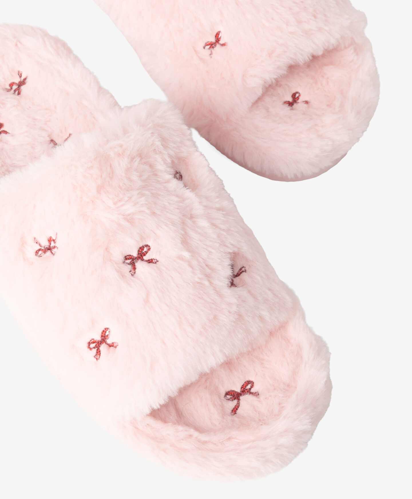Zapatillas de casa con estampado de lazos suaves, cálidas y muy cómodas. Ofrecen momentos de descanso en casa después de un día largo. La suela antideslizante mejora la comodidad y la seguridad al caminar.